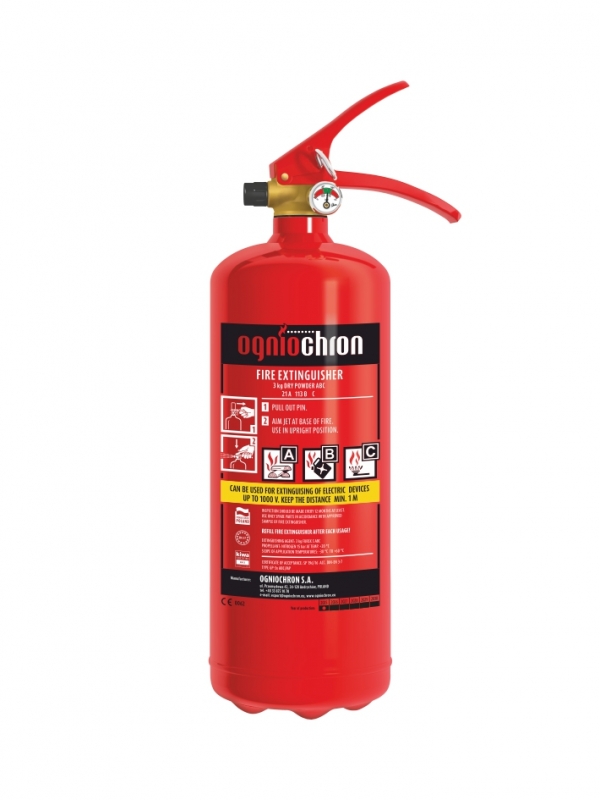 0003Ó Ogniochron Manometer 3 kg powder extinguisher ABC powderextinguisher 21A 113BC fire rating